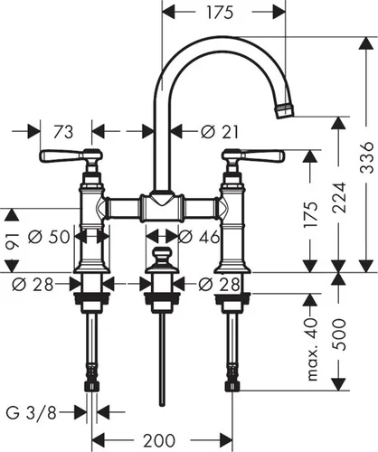 hansgrohe AXOR Montreux 2-handle basin mixer 220, drain set, lever handles, 175mm projection
