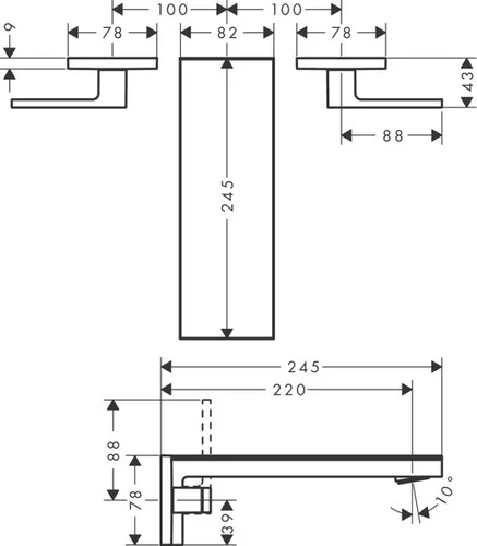hansgrohe AXOR MyEdition 3-hole basin mixer, concealed, with plate, 221mm projection, with drain set