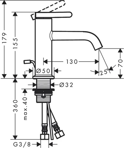 - Bestaat uit: Eéngreeps wastafelmengkraan, afvoergarnituur