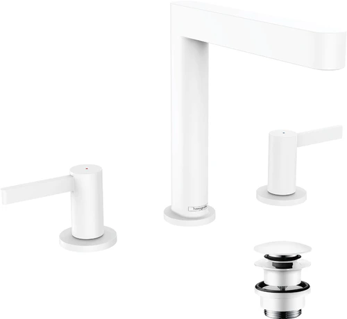 hansgrohe Finoris 3-Loch Waschtischarmatur 160 mit Push-Open Ablaufgarnitur, Ausladung 169 mm