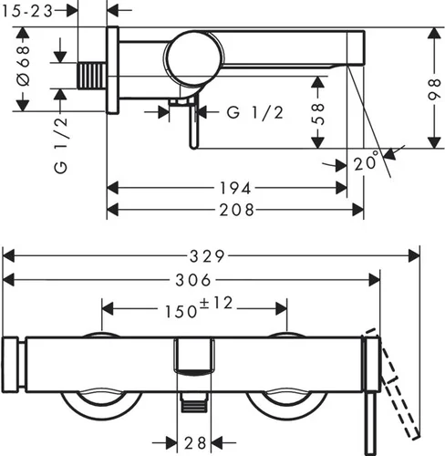 hansgrohe Finoris Einhebel-Wannenarmatur Aufputz, Ausladung 194 mm