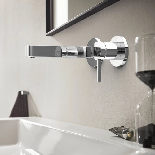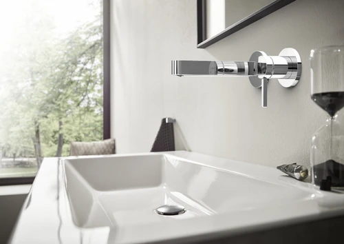 - Exklusives Ambiente: An der Wand montierte Waschtisch-Armatur mit einer Ausladung von 16,8 cm