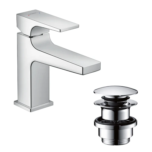 hansgrohe Metropol single-lever basin mixer 100, lever handle, push-open drain set, for hand-rinse basin, projection 127mm