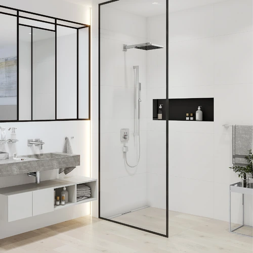 - Vielseitig: kann an Wand oder Decke montiert werden. Ein Brausearm oder Deckenanschluss wird zusätzlich benötigt