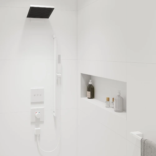 • Für Individualisten: hansgrohe Pulsify E kombiniert kubisches Design in der Dusche mit PowderRain