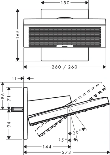 hansgrohe Pulsify E Duschkopf 260, 2 Strahlarten, EcoSmart, mit Wandanschluss