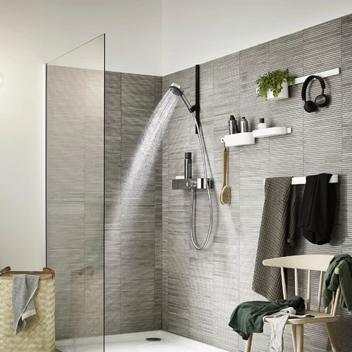 - Der Griff liegt angenehm in der Hand. Dank innenliegender Wasserführung wird er auch bei langem Duschen nicht heiß