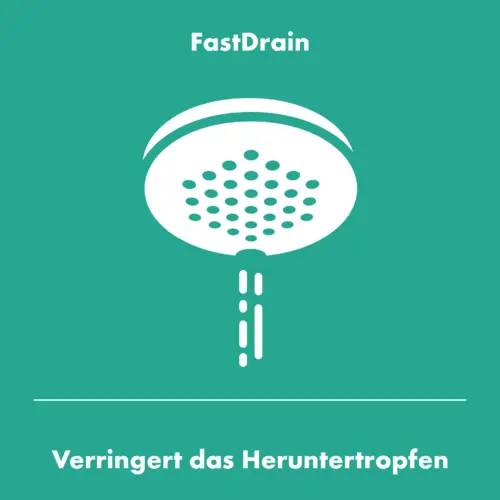 - Weniger Nachtropfen: Restwasser fließt nach dem Duschen schnell ab (Fast Drain)