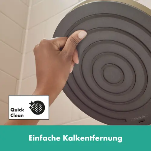 Die Strahlscheibe der Kopfbrause ist geprägt von ringförmigen Düsen, die nicht nur für ein ästhetisches Design sorgen, sondern auch die Funktionalität der Brause maximieren. Dank der Fast Drain-Technologie wird das Nachtropfen minimiert, sodass das Restwasser nach dem Duschen schnell abfließt. Dieses durchdachte Design macht die Pflege und Wartung deiner Hansgrohe Duscharmatur zum Kinderspiel.