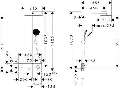 - 1 x Duschsystem 210/340 1jet mit ShowerSelect Comfort