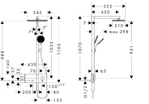 - 1 x Duschsystem 210/340 2jet EcoSmart mit ShowerSelect Comfort