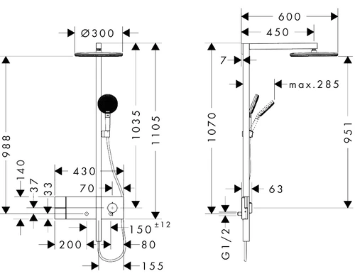 - 1 x Duschsystem 300 1jet mit ShowerSelect Comfort