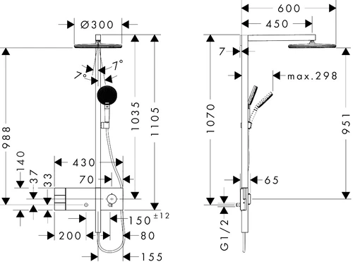 - 1 x Duschsystem 300 2jet EcoSmart mit ShowerSelect Comfort
