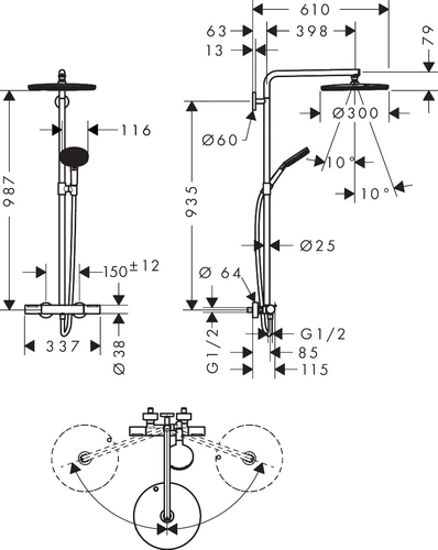 hansgrohe Raindance Alive S PURO Duschsystem 300 1jet EcoSmart mit Ecostat Element