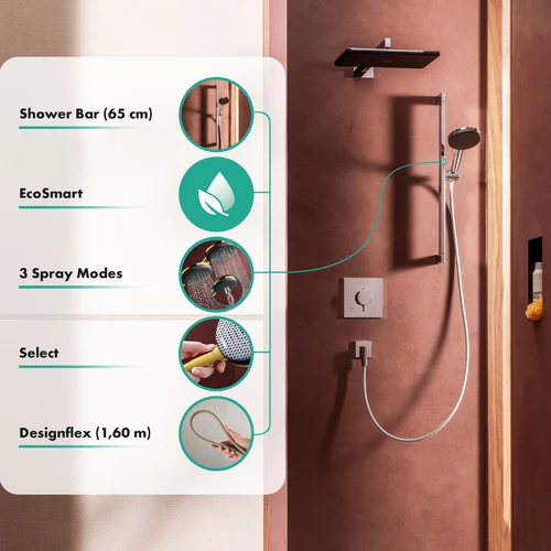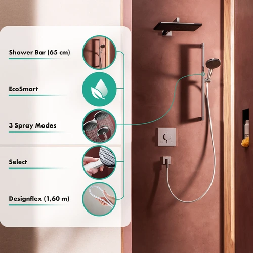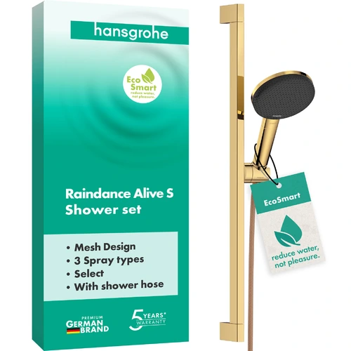 hansgrohe Raindance Alive Select S Brausehalterset 125, 3jet EcoSmart mit Brausestange Unica E PURO 65cm und Easy Slide Brausehalter
