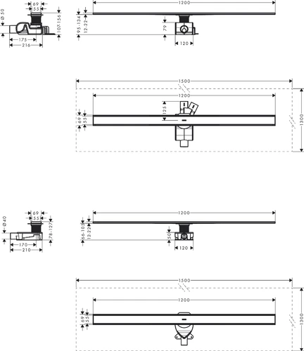 hansgrohe RainDrain Allround Komplettset Duschrinne 1200, für Standard-/flache Installation