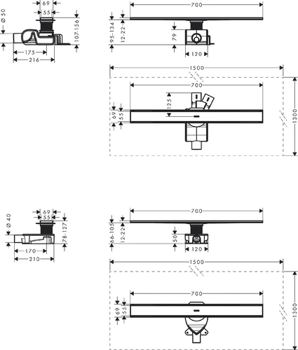 hansgrohe RainDrain Allround Komplettset Duschrinne 700, für Standard-/flache Installation