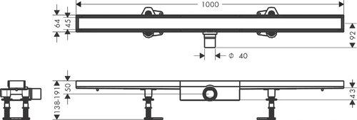 hansgrohe RainDrain Compact Komplettset Duschrinne 1000, befliesbar, für flache Installation