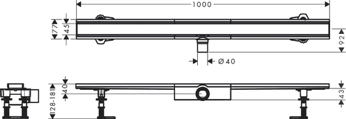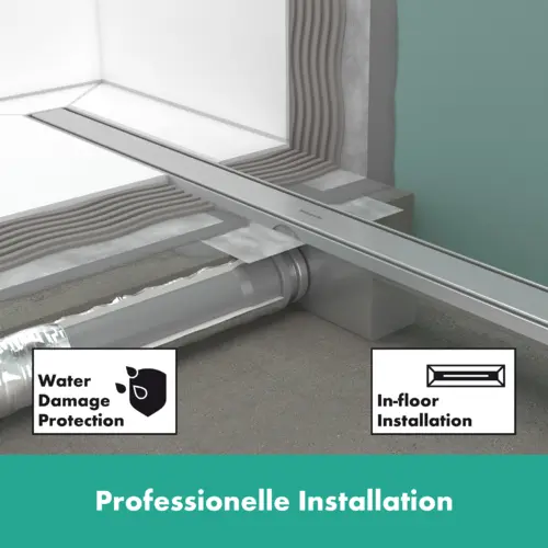 hansgrohe RainDrain Compact Komplettset Duschrinne 1000, für flache Installation, Edelstahl gebürtstet