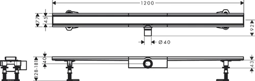 hansgrohe RainDrain Compact Komplettset Duschrinne 1200, für flache Installation, Edelstahl gebürtstet