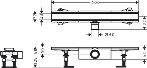 hansgrohe RainDrain Compact Komplettset Duschrinne 600, für Standardinstallation, Edelstahl gebürstet