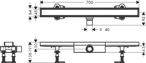 hansgrohe RainDrain Compact Komplettset Duschrinne 700, befliesbar, für flache Installation