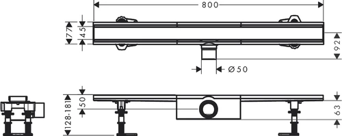 hansgrohe RainDrain Compact Komplettset Duschrinne 800, für Standardinstallation, Edelstahl gebürstet