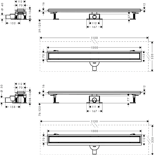 hansgrohe RainDrain Go Komplettset Duschrinne 1000, rückseitig befließbar, für Standard-/flache Installation