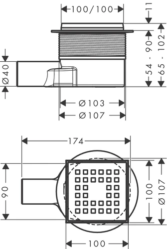 hansgrohe RainDrain Point Komplettset Punktablauf, 100x100, Edelstahl gebürstet