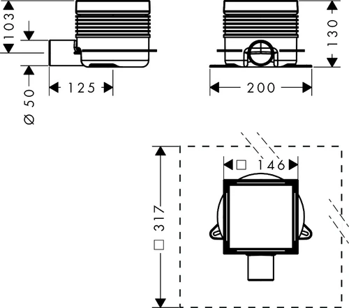 - Richtung Auslass waagerecht vormontiert/ senkrecht einsetzbar