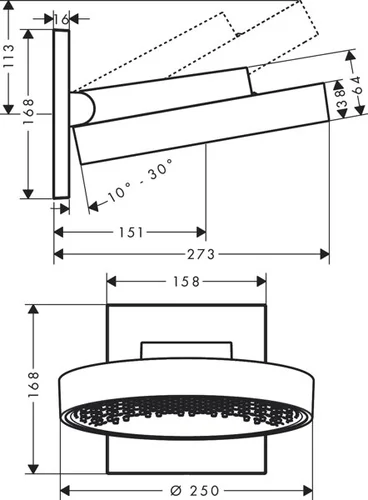 Die 250 mm große Brausekopfgröße, umgeben von einer graphitfarbenen Aluminiumstrahlscheibe, verleiht deinem Badezimmer eine elegante und moderne Atmosphäre. Ihre Neigung kann zwischen 10-30° verstellt werden, sodass du den Winkel perfekt auf deine Bedürfnisse einstellen kannst.