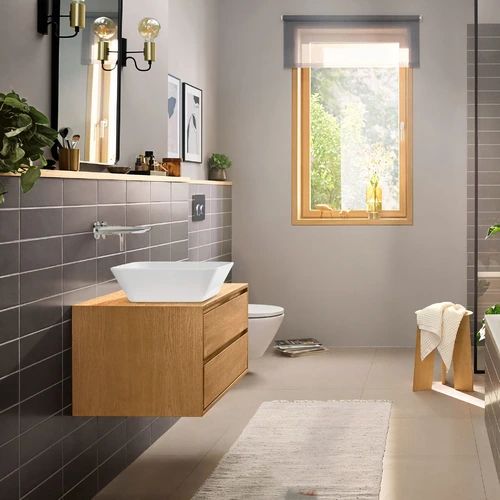 - De greep kan links of rechts van de uitloop geplaatst worden bij de montage van het inbouwdeel