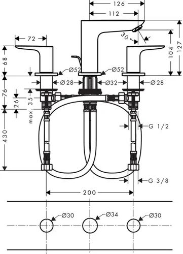 hansgrohe Talis E 3-hole basin mixer, drain set, 112mm projection
