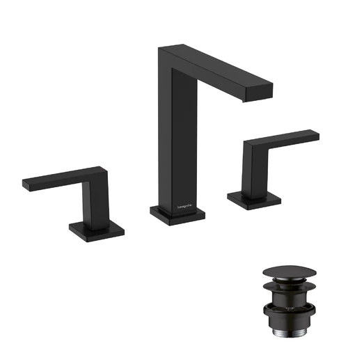 hansgrohe Tecturis E Waschtischarmatur 150, 3-Loch, mit Push-Open Ablaufgarnitur, Ausladung 158mm, EcoSmart+