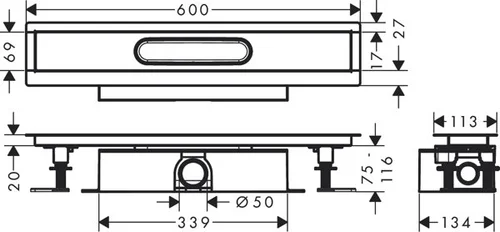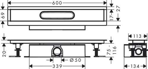 hansgrohe uBox universal Komplettset, Standardinstallation für Duschrinnen Fertigsets 600mm