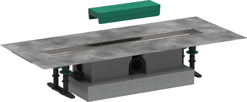 - bestehend aus: Installationsset, Grundkörper, werkseitig vormontiertes Dichtvlies, Siphon, Höhenverstellplatten