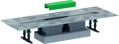 - bestehend aus: Installationsset, Grundkörper, werkseitig vormontiertes Dichtvlies, Siphon, Höhenverstellplatten