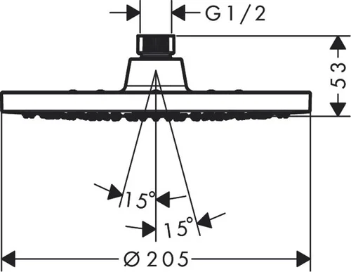 - Versatile: the shower head can be mounted on the wall or ceiling. A shower arm (24 cm, #27809000) or ceiling connection (10 cm #27804000 or 30 cm #27805000) is required.