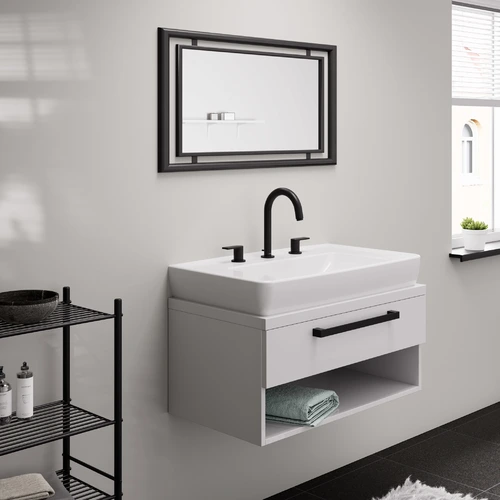 - Lieferumfang: 3-Loch Waschtischarmatur, Anschlussschläuche, Schaftbefestigung, Rosetten, Montageanleitung
