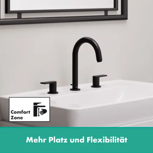 - Der große Abstand zwischen Auslauf und Becken bietet mehr Raum für eine komfortable Nutzung (ComfortZone 150)