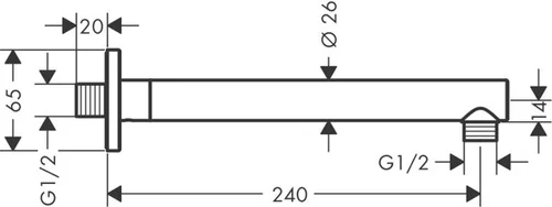 - Douchearm voor wandaansluiting: brengt de douchekop in de ideale positie (lengte: 240 mm)