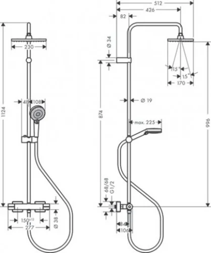 - Leveringsomvang: Showerpipe met thermostaat, rozetten, S-aansluitingen, bevestigingsmateriaal, montagehandleiding