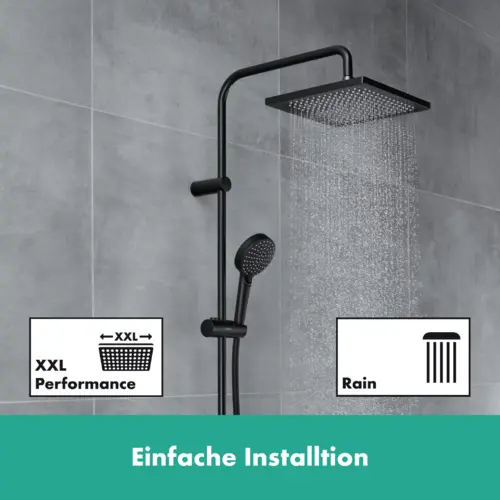 hansgrohe Vernis Shape shower system, 240 1jet, with bath thermostat, matt black
