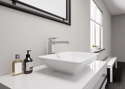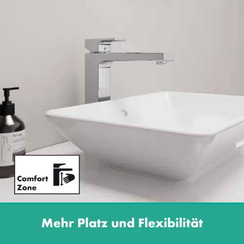 - Der sehr große Abstand zwischen Auslauf und Becken bietet viel Raum für eine komfortable Nutzung (ComfortZone 190)