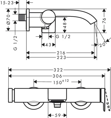 hansgrohe Vivenis, Einhebel-Wannenarmatur Aufputz