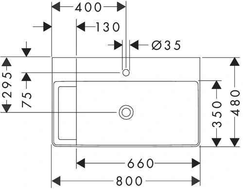 hansgrohe Xelu Q Aufsatzwaschtisch, Ablage links, ohne Überlauf, 800x480mm, SmartClean, geschliffen, mit Ablaufgarnitur