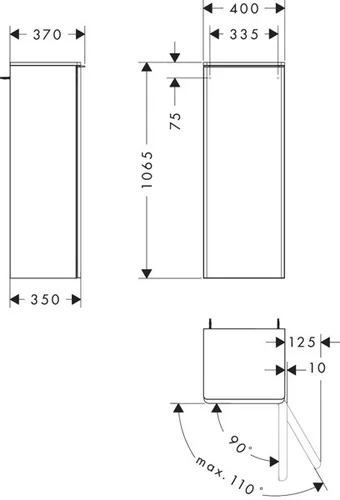 hansgrohe Xelu Q Halbhochschrank, 400x350, 1 Tür, Türanschlag rechts, 2 Glasfachböden