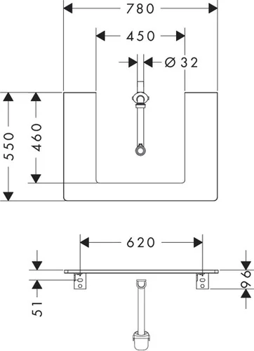 hansgrohe Xelu Q Konsole mit Ausschnitt mittig, 780x550, für Aufsatzwaschtisch 500x480mm, geschliffen