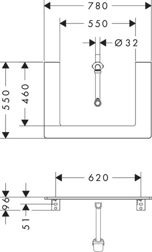 hansgrohe Xelu Q Konsole mit Ausschnitt mittig, 780x550, für Aufsatzwaschtisch 600x480mm, geschliffen