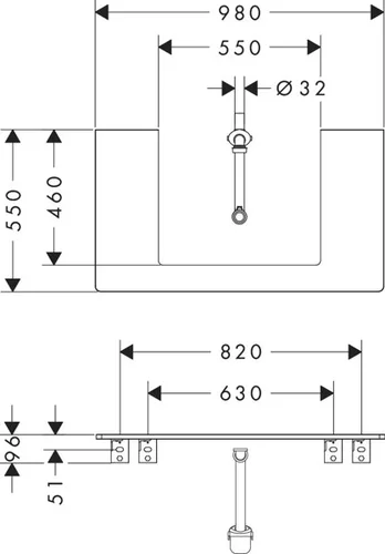hansgrohe Xelu Q Konsole mit Ausschnitt mittig, 980x550, für Aufsatzwaschtisch 600x480mm, geschliffen